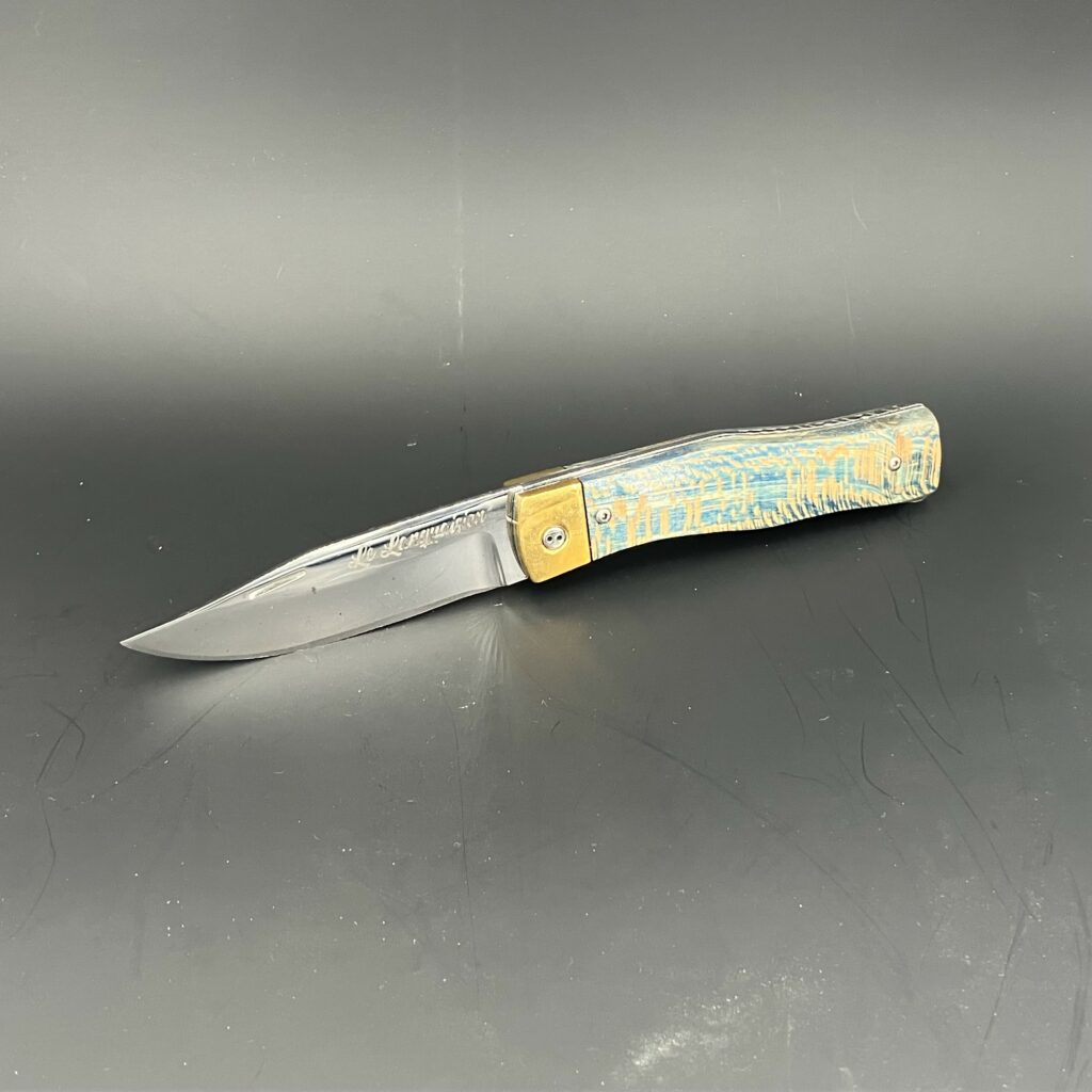 Le couteau pliant, discret et élégant, se glisse facilement dans une poche. J’ai déjà réalisé des modèles sobres pour un usage quotidien, mais aussi des pièces raffinées avec des manches en bois précieux ou en corne, destinées à devenir de véritables objets de transmission. Sa praticité rencontre ici le savoir-faire artisanal.